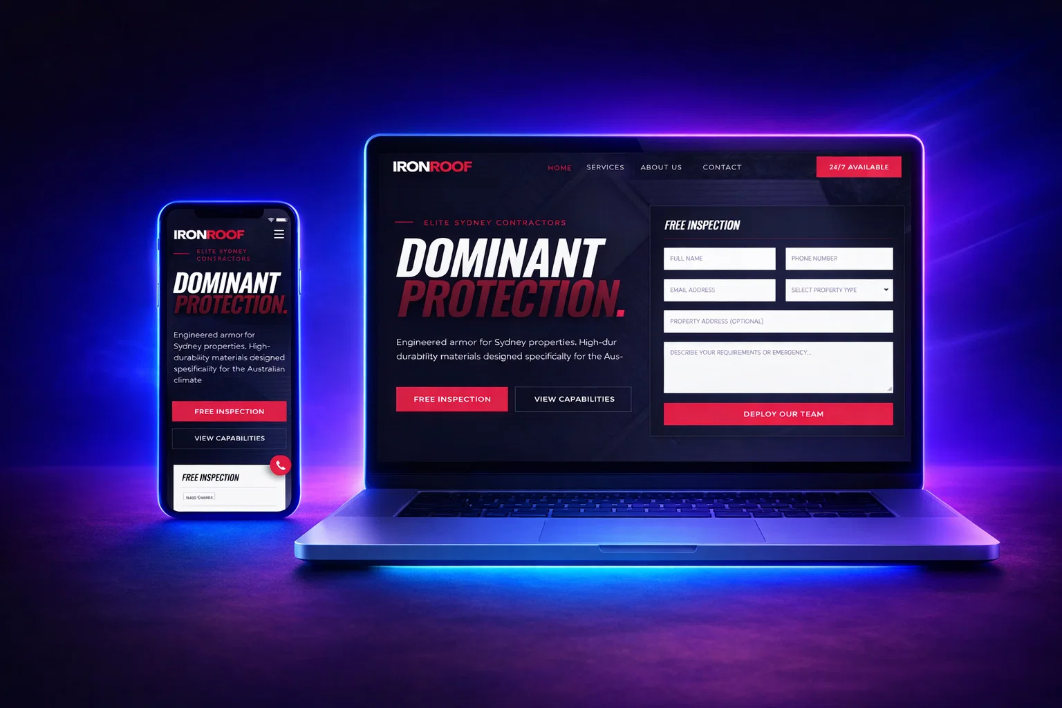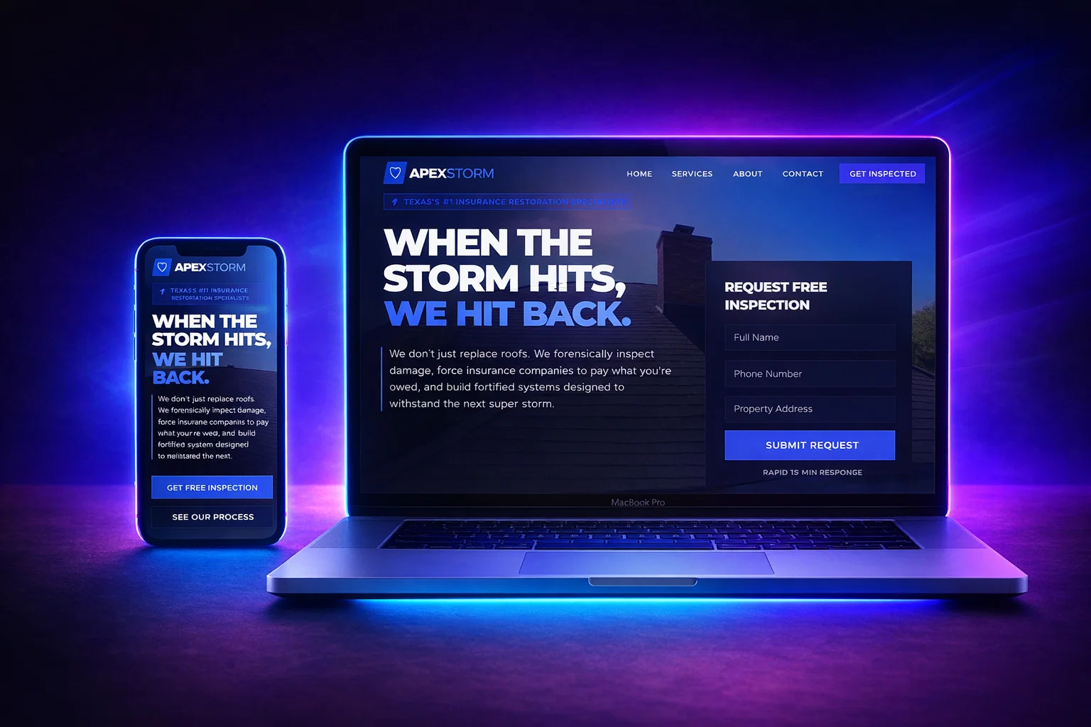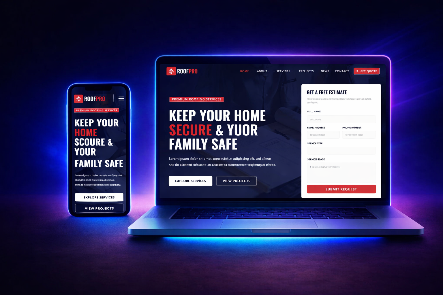 A high-converting roofing website and lead generation system designed to attract homeowners, showcase services, and drive qualified leads for roofing businesses.