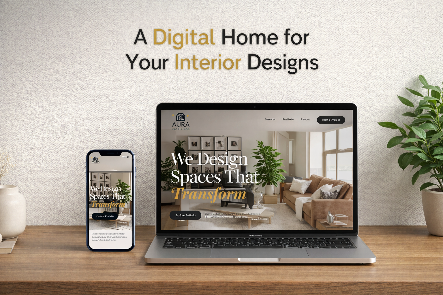 An elegant interior design website crafted to showcase design projects, highlight services, and attract potential interior design clients.