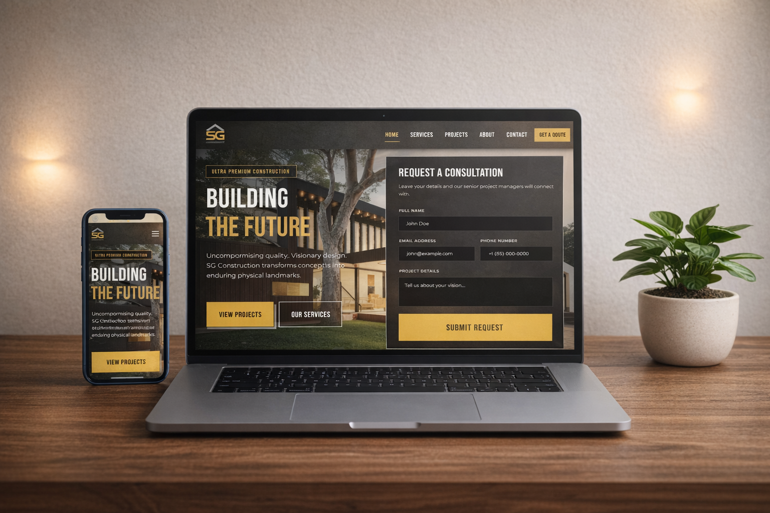 A professional construction business website built to present construction services, project portfolios, and generate inquiries from potential clients.